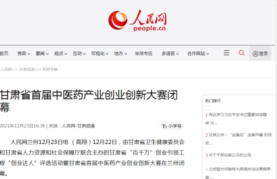 多家媒體爭(zhēng)相報(bào)道,“甘肅普安制藥股份有限公司榮獲甘肅省首屆中醫(yī)藥產(chǎn)業(yè)創(chuàng)業(yè)創(chuàng)新大賽創(chuàng)新組第一”強(qiáng)勢(shì)霸屏