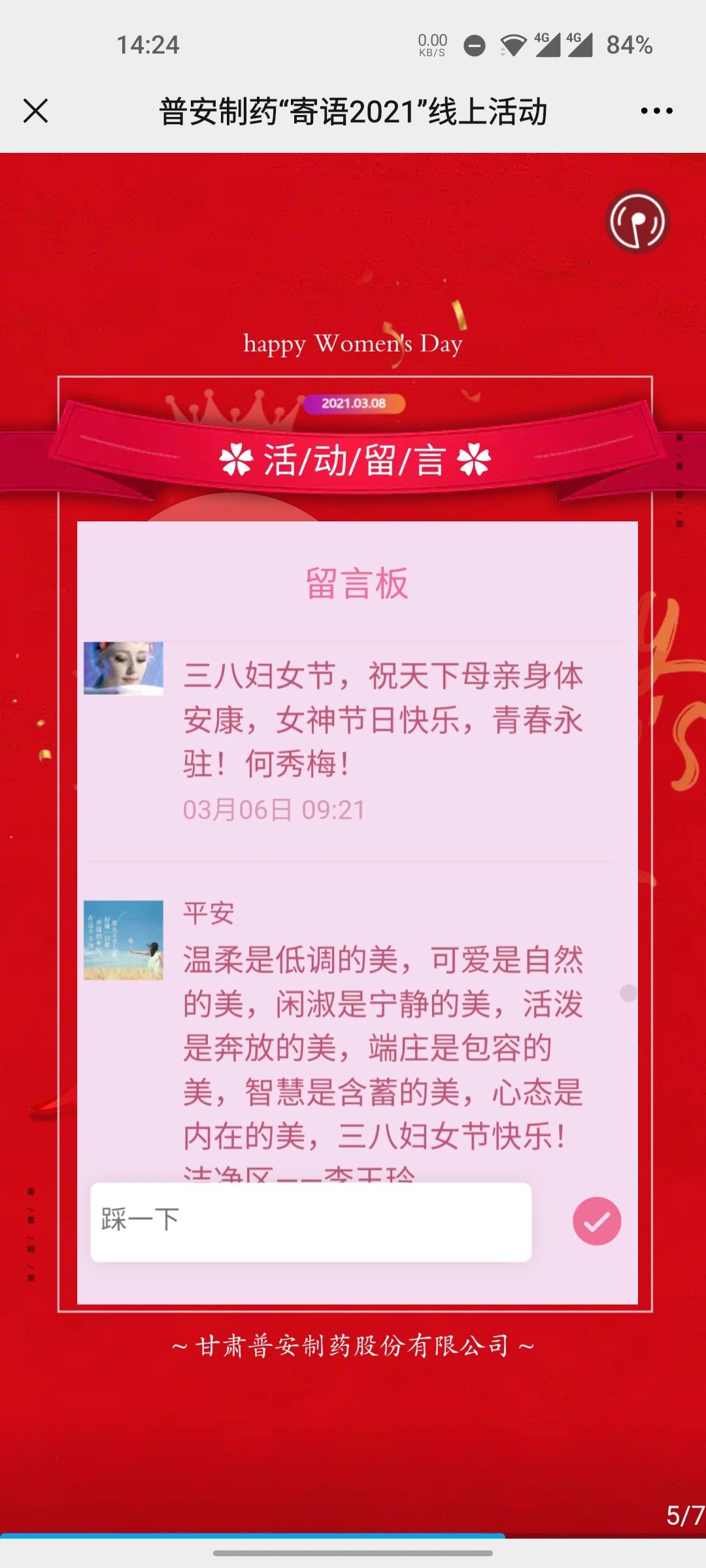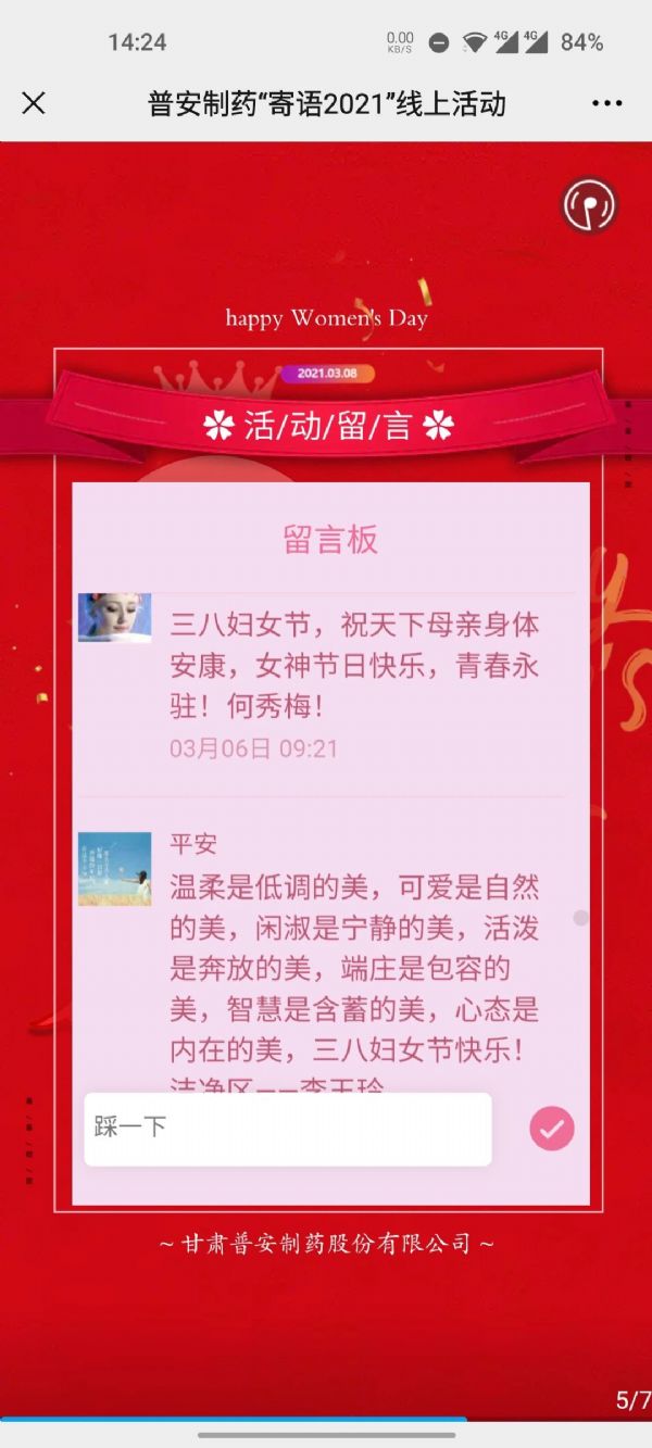 3月5日-3月8日開展了“寄語2021”線上寄語活動,廣大女職工紛紛留下了對2021年美好的祝愿,展現(xiàn)了女職工對家庭、企業(yè)、國家拳拳赤子之心。