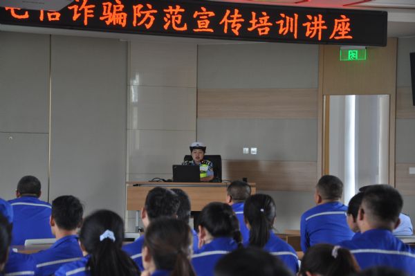 觀看影片結(jié)束后,武威市涼州區(qū)公安局宣傳中心滕年峰警官通過現(xiàn)場解說電信詐騙犯罪分子的慣用手法、作案方式,提醒廣大員工提高電信安全防范意識,不輕信涉及賬號、密碼等信息的微信或短信通知,不輕易點陌生鏈接、掃陌生二維碼,以及日常生活中加強個人信息保護(hù),嚴(yán)防網(wǎng)絡(luò)詐騙。