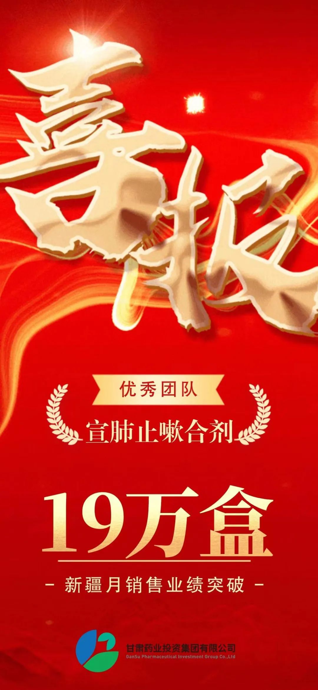 喜報(bào)!宣肺止嗽合劑新疆月銷售業(yè)績突破19萬盒