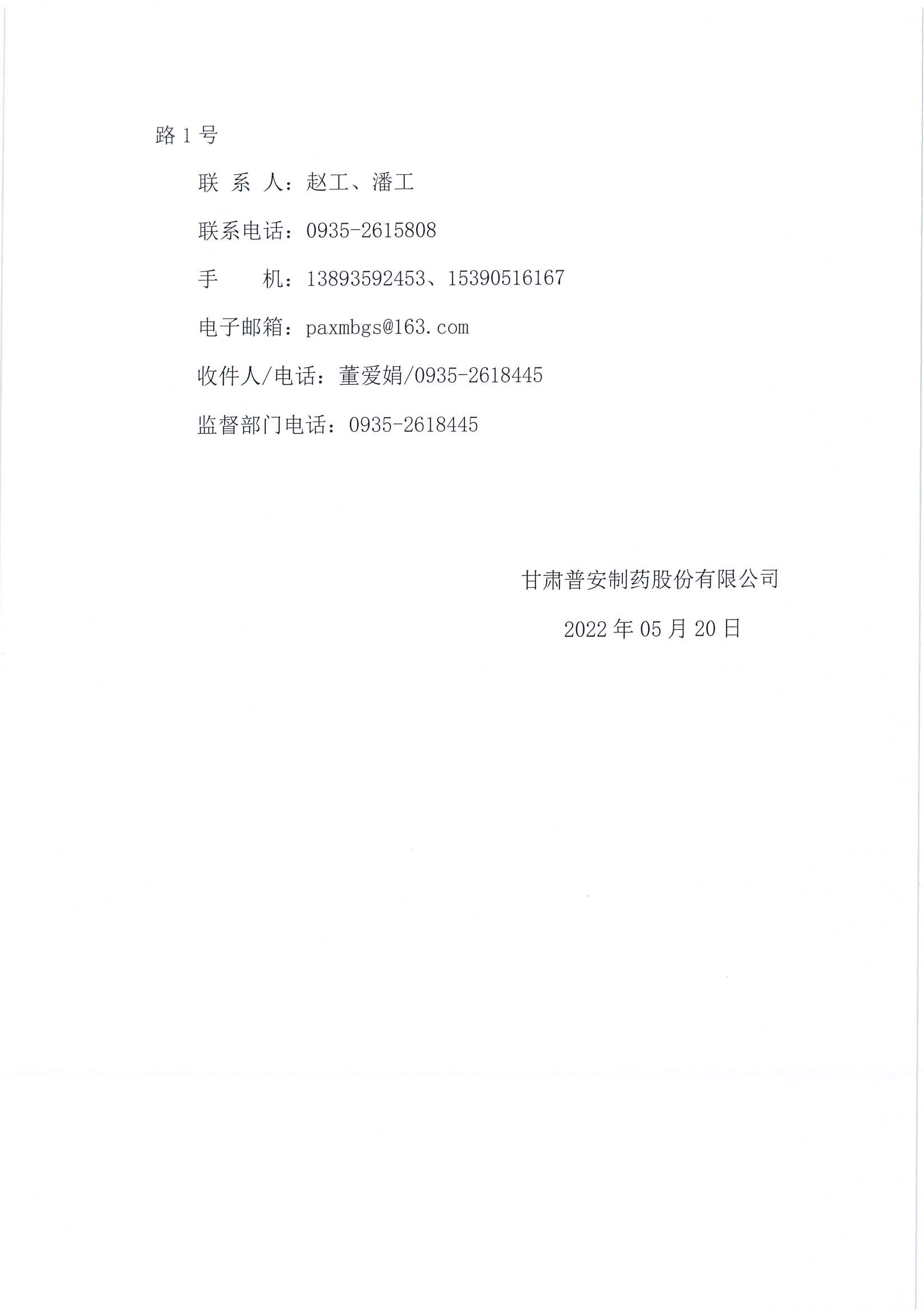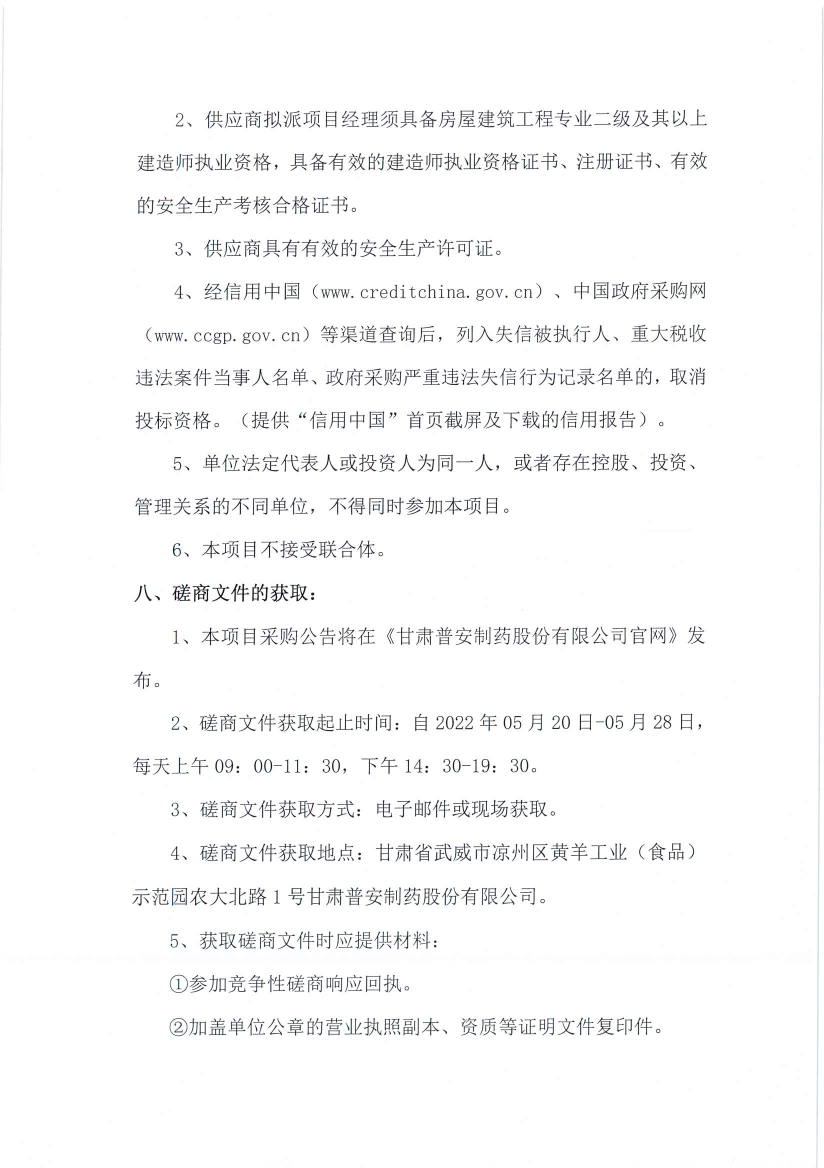 甘肅普安制藥股份有限公司關于對15T/h鍋爐建設項目鍋爐房、管溝工程競爭性談判公告的澄清