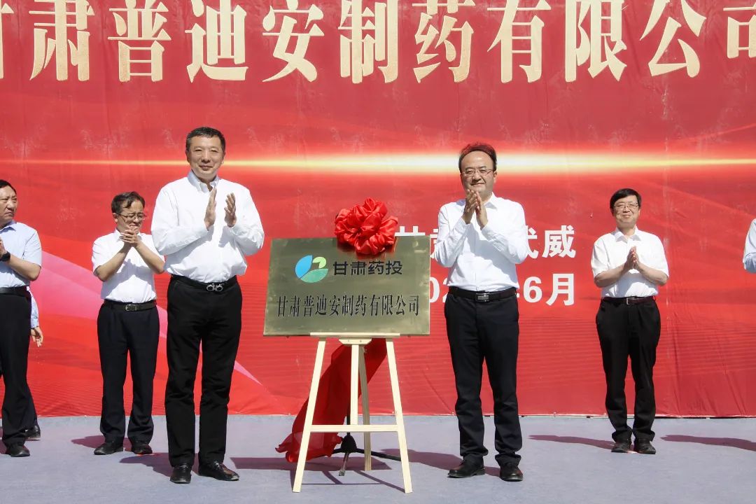 奠基儀式由武威市委常委、常務副市長白振海主持,市委常委、涼州區(qū)委書記李萬岳、甘肅藥業(yè)集團黨委副書記、總經(jīng)理竇生銘先后致辭講話。市委副書記、市長王國斌與甘肅藥業(yè)集團黨委書記、董事長魏陽為甘肅普迪安制藥有限公司揭牌并宣布項目開工建設。