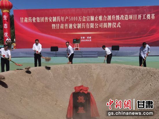 6月15日,在武威市涼州區(qū)舉行了甘肅藥業(yè)集團(tuán)普安制藥年產(chǎn)5000萬(wàn)盒(3億支)宣肺止嗽合劑升級(jí)改造項(xiàng)目開工奠基暨甘肅普迪安制藥有限公司成立揭牌儀式。