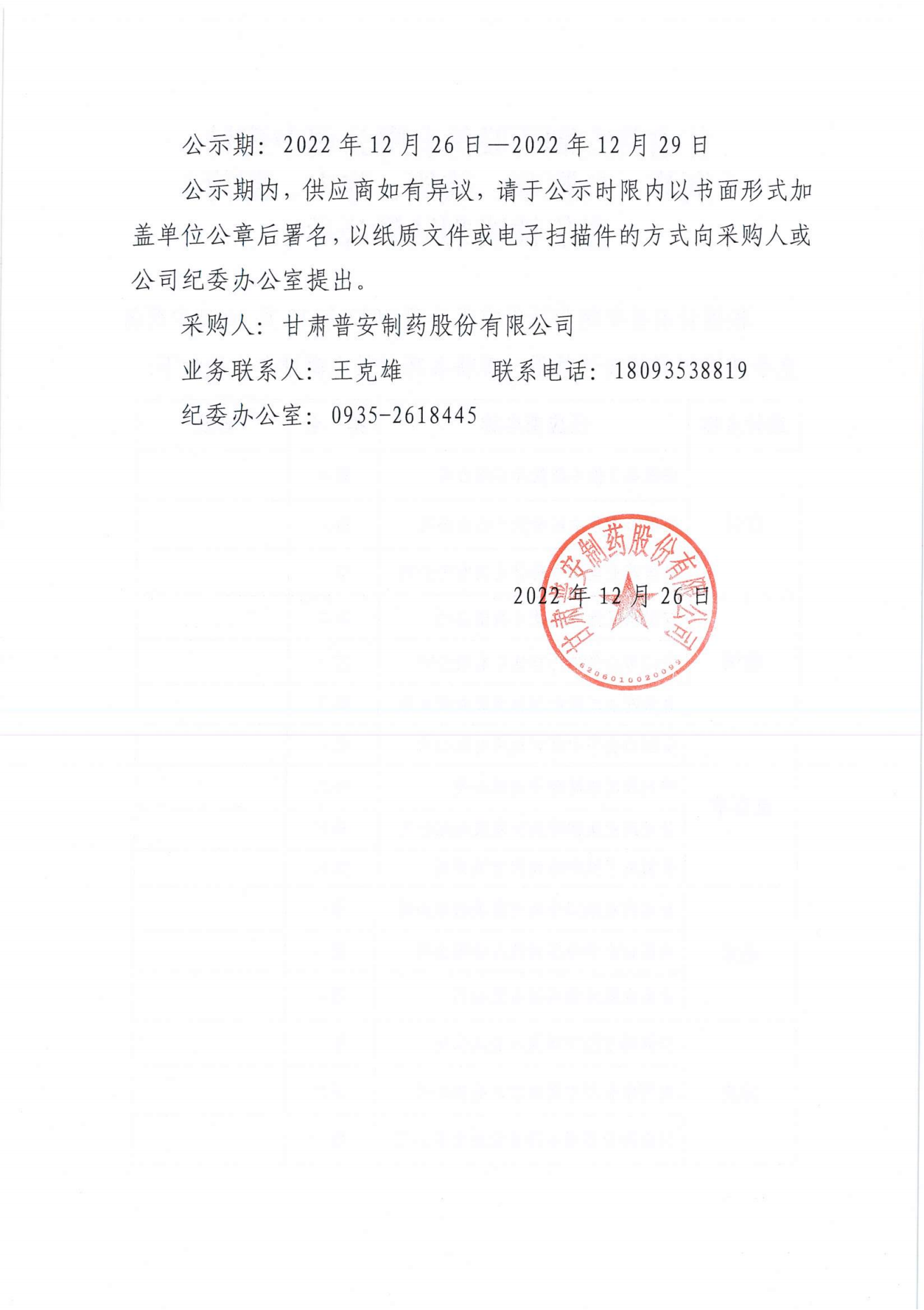 甘肅普安制藥股份有限公司 中藥材(荊芥、魚(yú)腥草、前胡、陳皮、薄荷)競(jìng)爭(zhēng)性談判結(jié)果公示