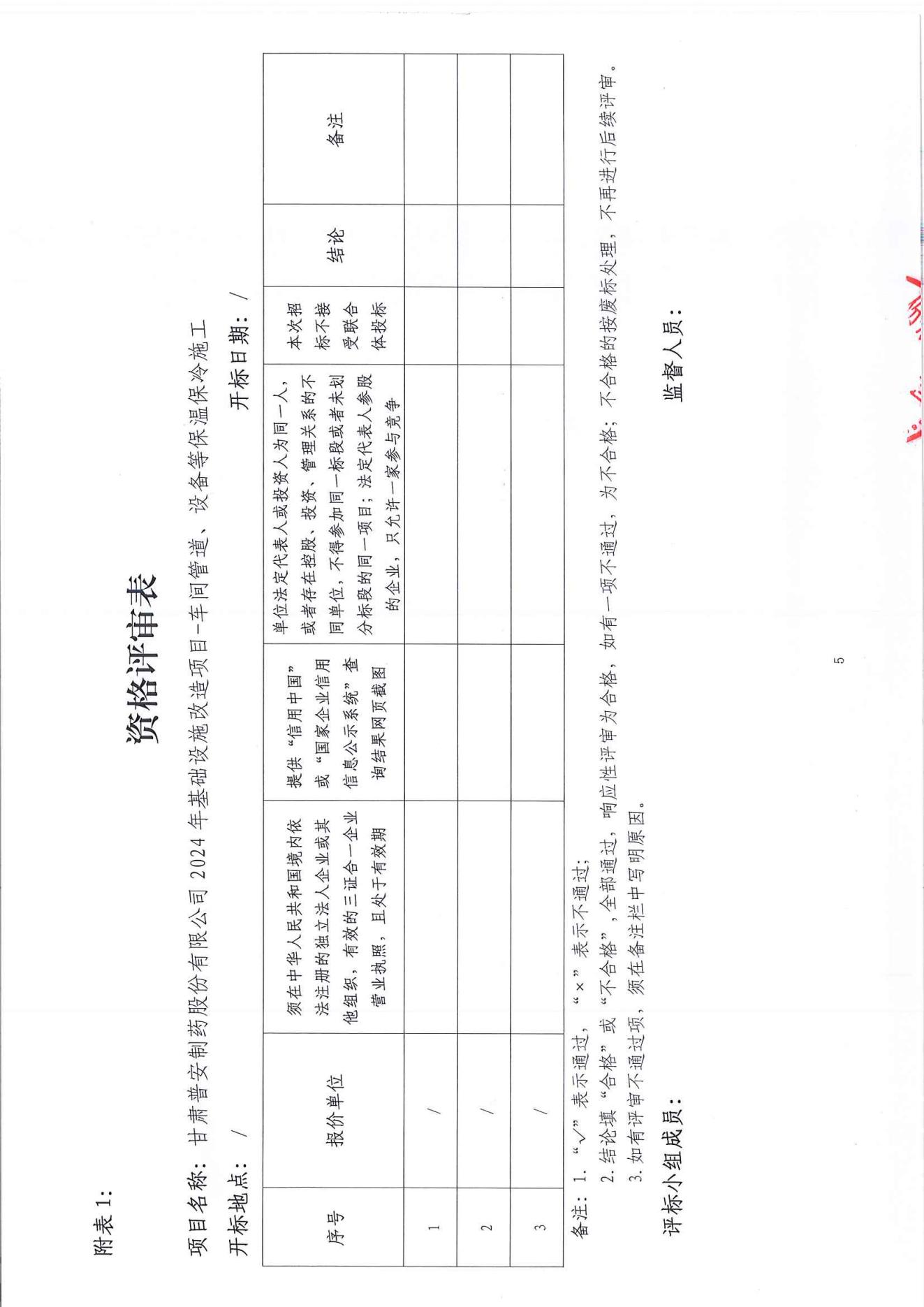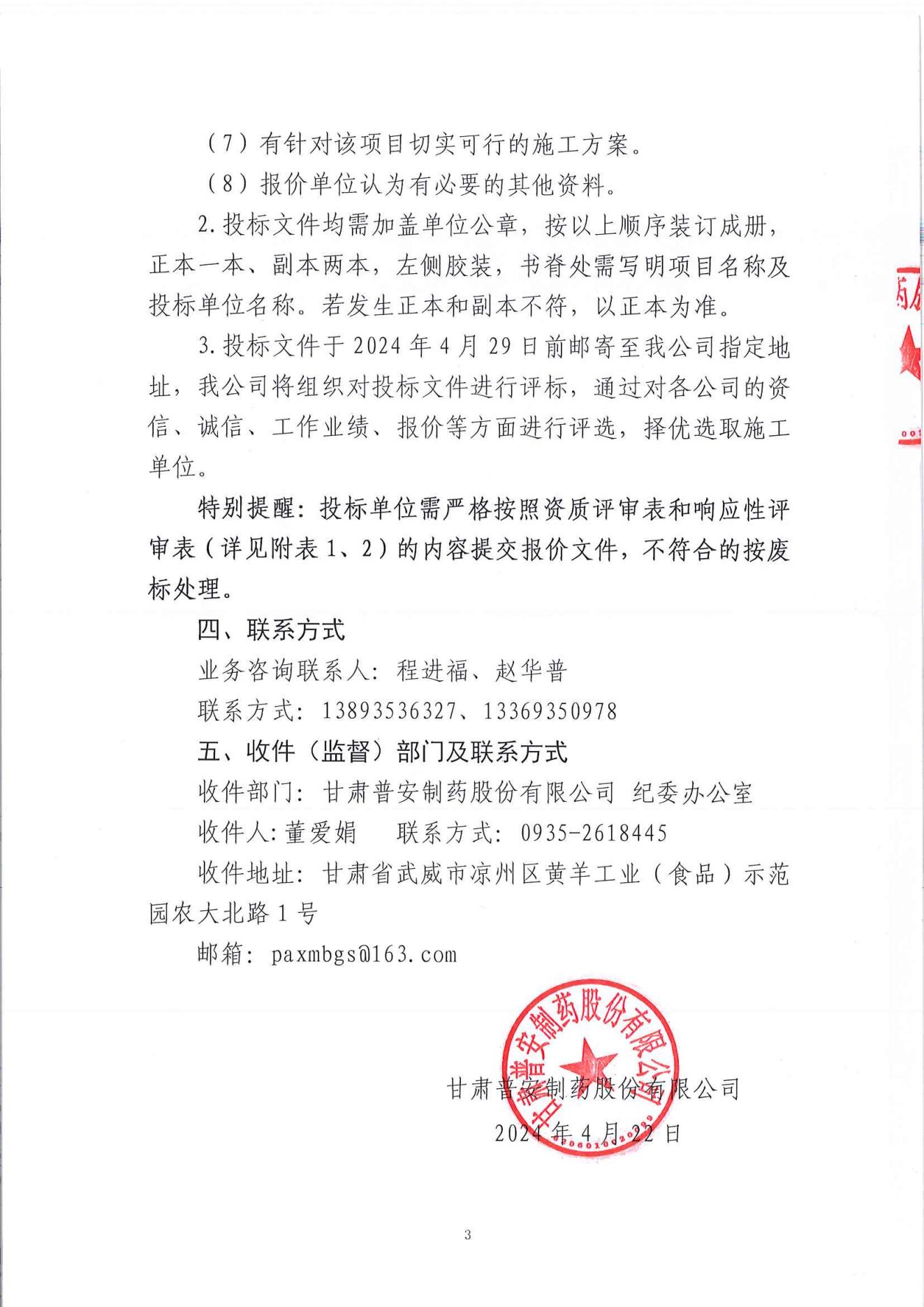 甘肅普安制藥股份有限公司2024年基礎(chǔ)設(shè)施改造項(xiàng)目-車間管道、設(shè)備等保溫保冷施工招標(biāo)公告