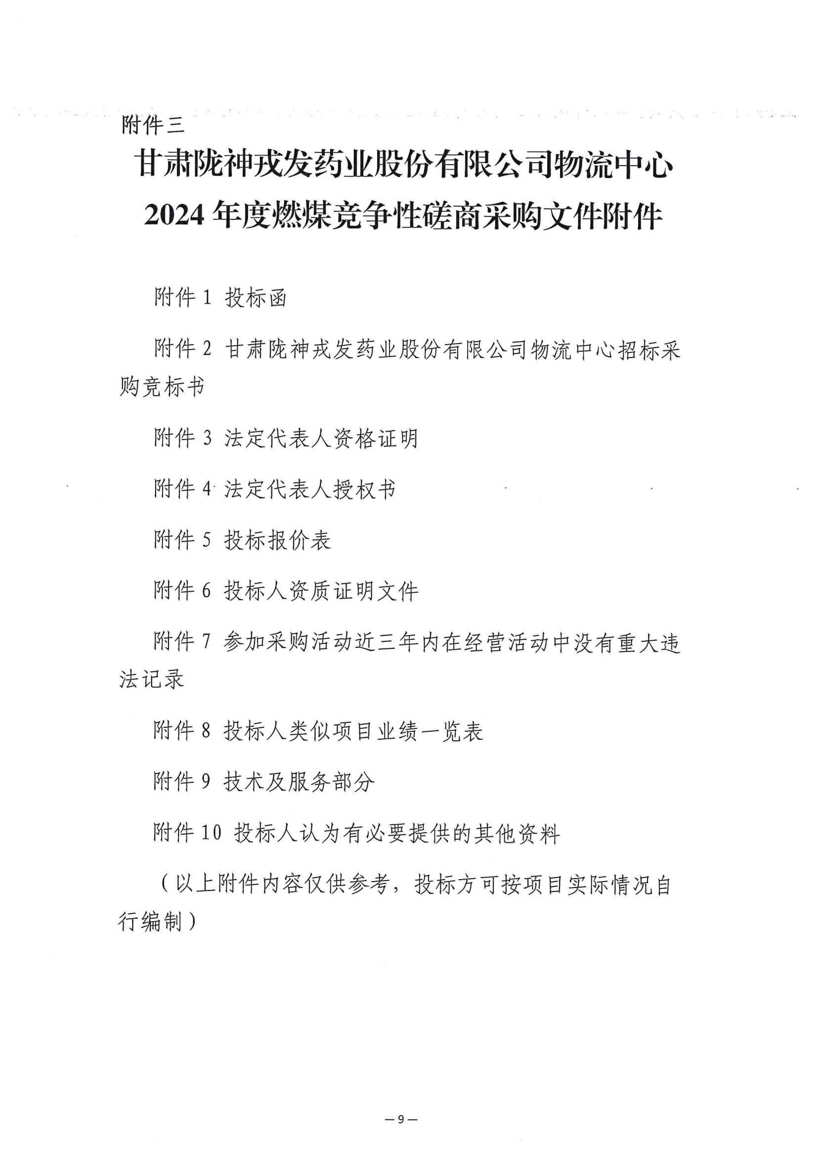 甘肅隴神戎發(fā)藥業(yè)股份有限公司物流中心2024年度燃煤競(jìng)爭(zhēng)性磋商采購(gòu)公告