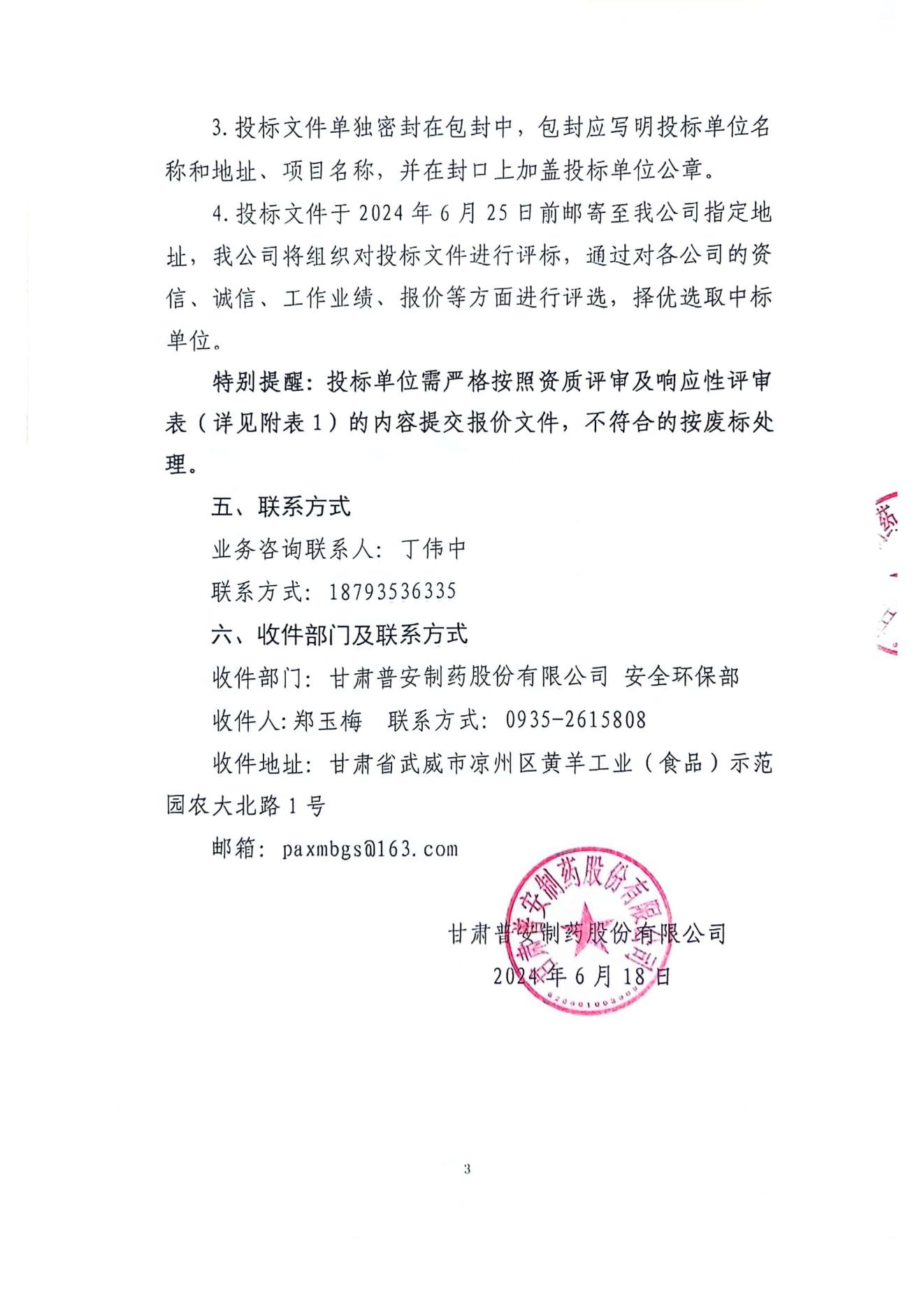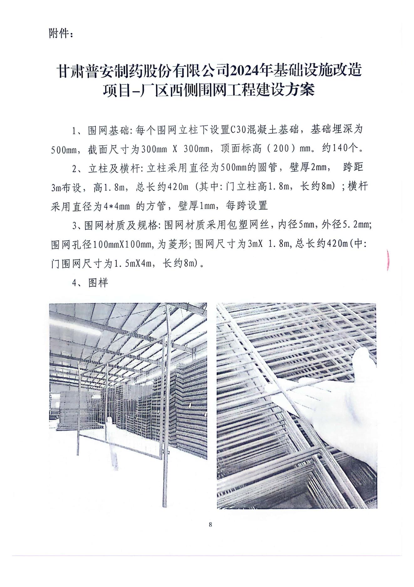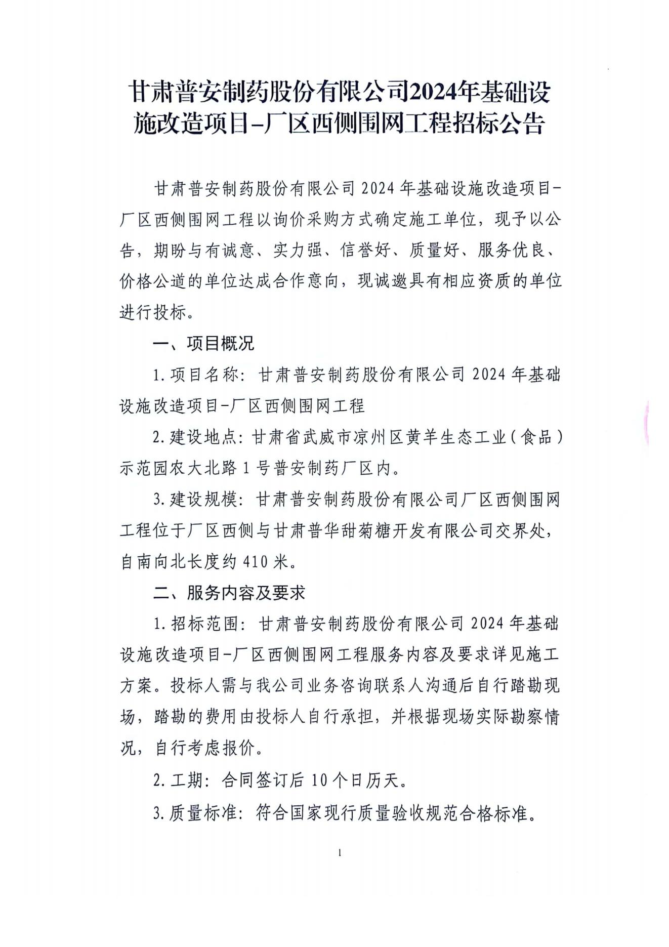 甘肅普安制藥股份有限公司2024年基礎設施改造項目-廠區(qū)西側(cè)圍網(wǎng)工程招標公告