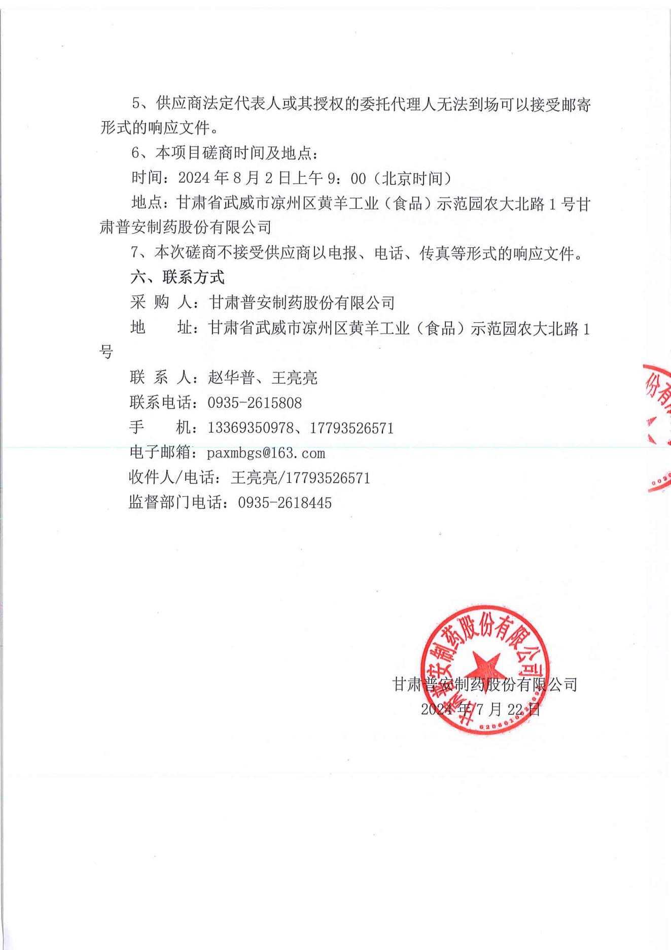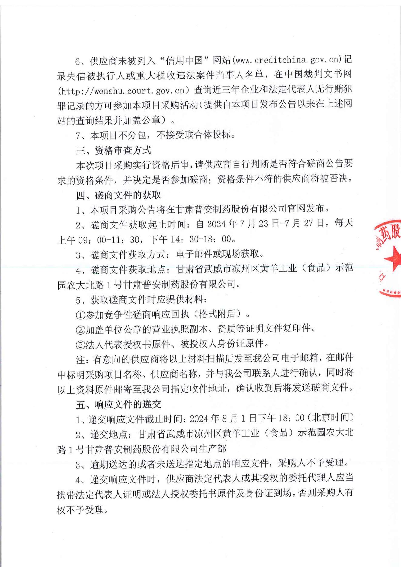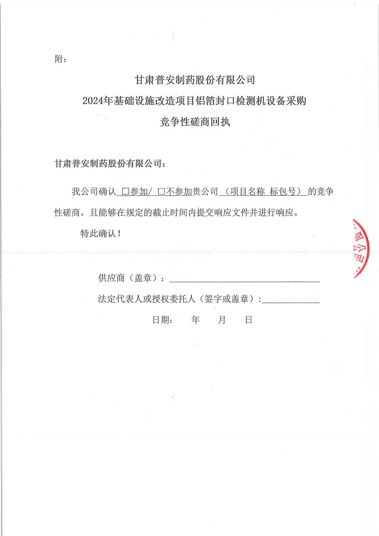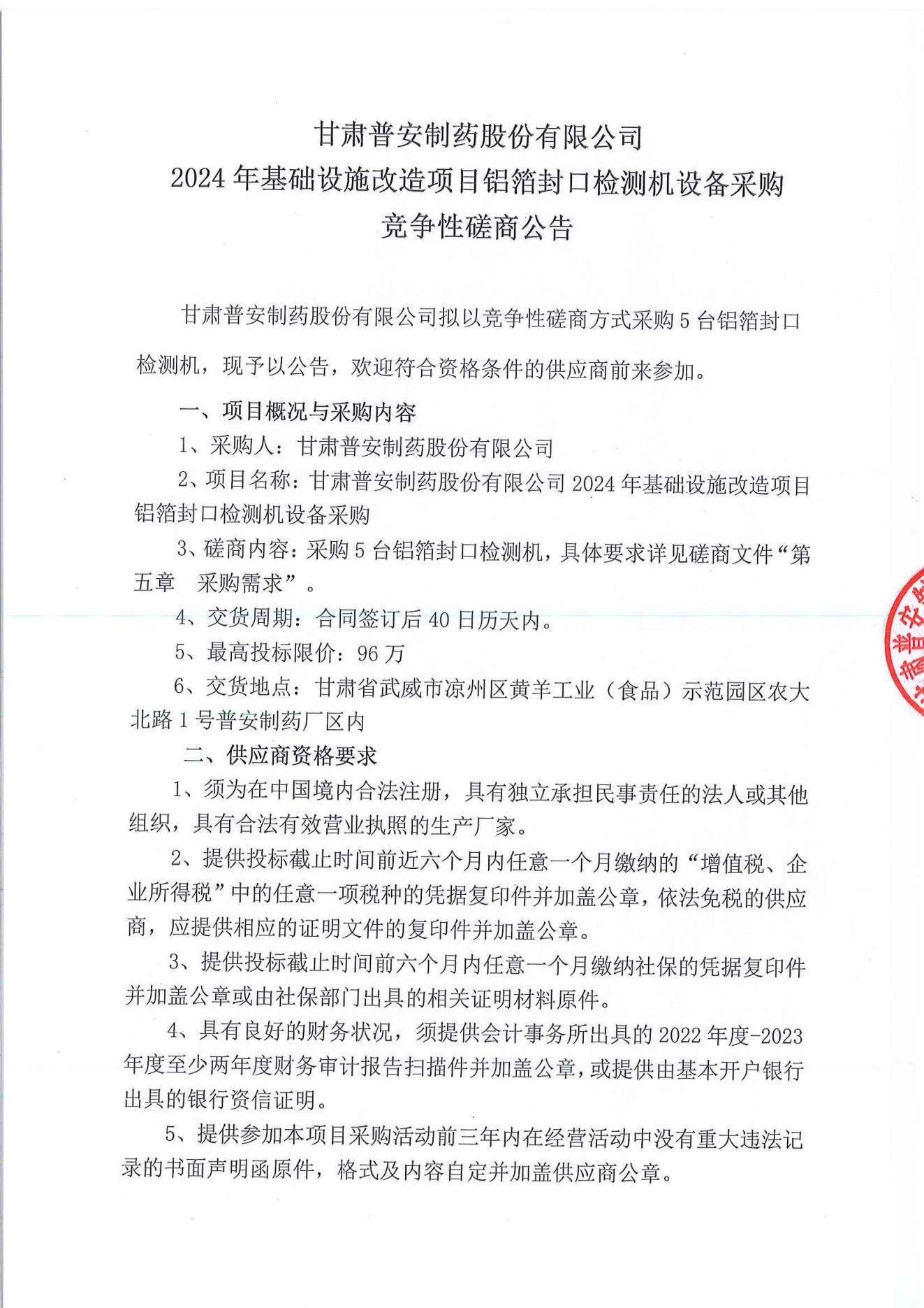 甘肅普安制藥股份有限公司2024年基礎(chǔ)設(shè)施改造項(xiàng)目鋁封口檢測(cè)機(jī)設(shè)備采購競(jìng)爭(zhēng)性磋商公告