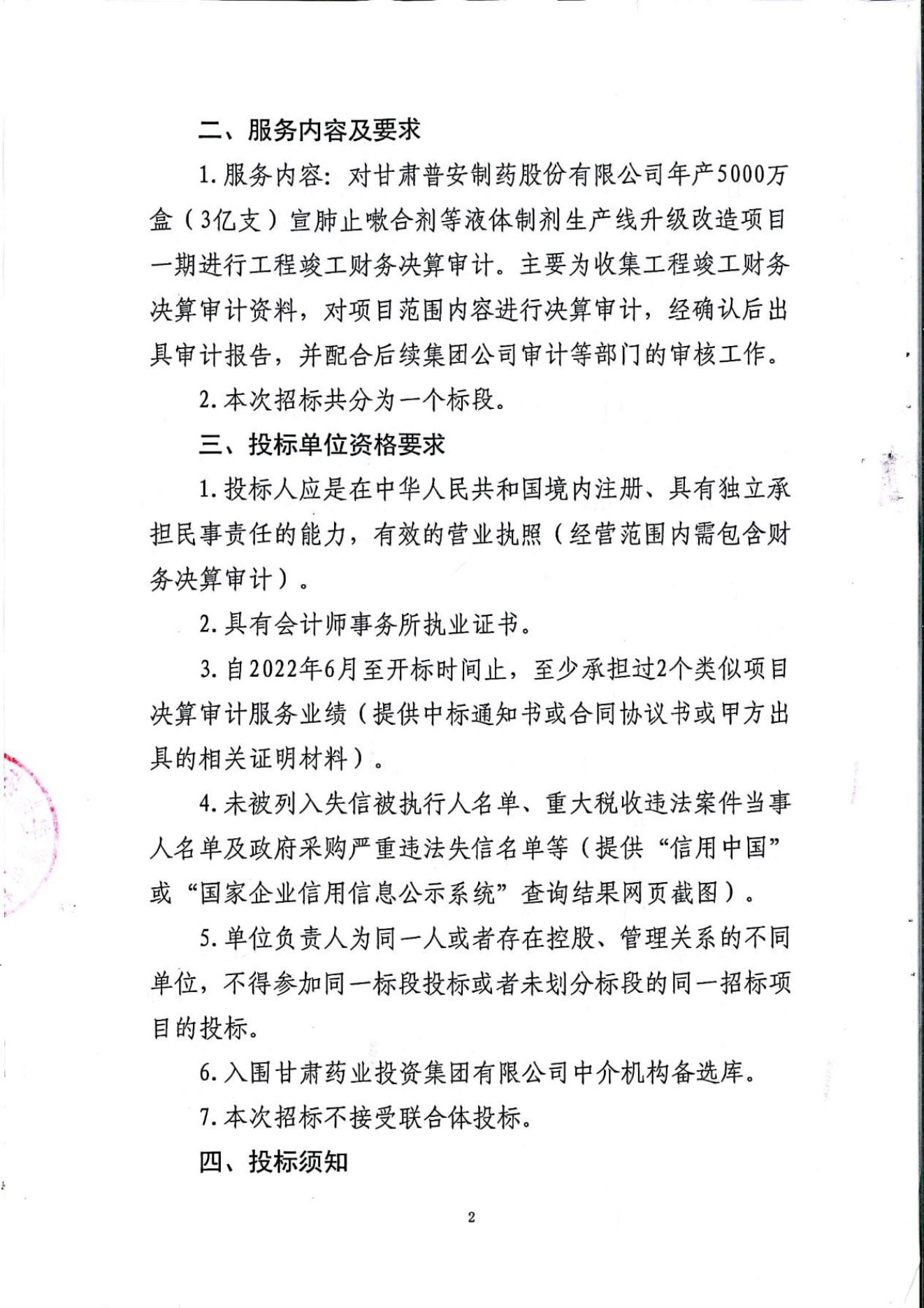 普安制藥年產(chǎn)5000萬盒宣肺止嗽合劑等液體制劑生產(chǎn)線升級改造項(xiàng)目一期竣工決算審計(jì)服務(wù)招標(biāo)公告