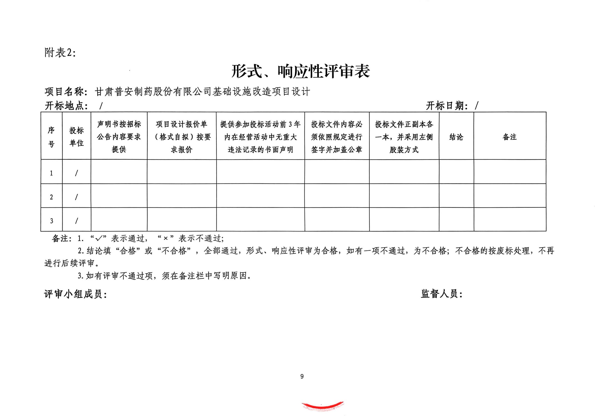 甘肅普安制藥股份有限公司基礎設施改造項目設計招標公告